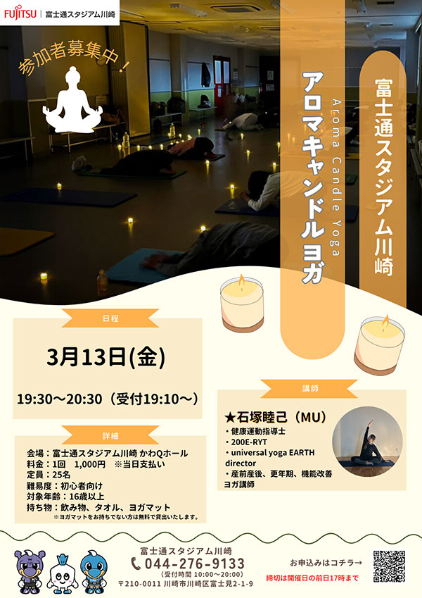 富士通スタジアム川崎にて、「Aroma Candle Yoga」を開催いたします。