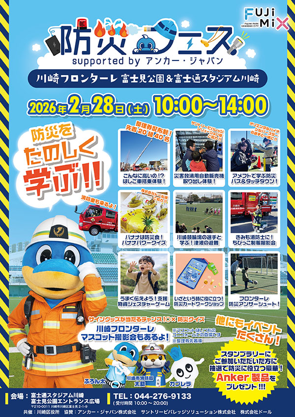 2月28日(土)富士通スタジアム川崎・富士見公園エントランス広場にて「防災フェス2026」を開催します。