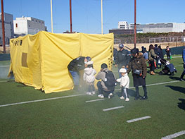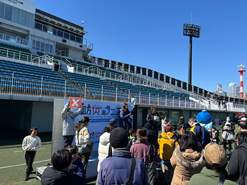 川崎市の広域避難場所である富士通スタジアム川崎を会場に、親子で楽しみながら学べる・体験できる防災イベントです。