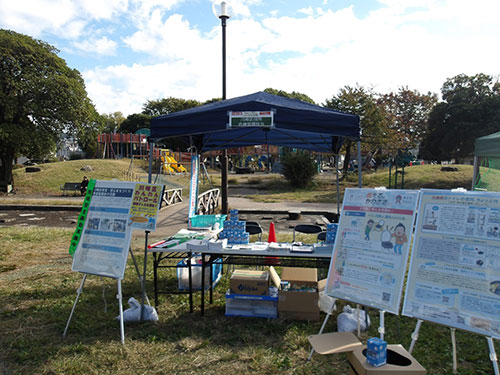 広域避難場所である富士見公園には災害時に水洗トイレが使えなくなった場合に備え、マンホールトイレを用意しています。実際にマンホールトイレを設置し、構造や使い方を確認し、非常時に役立つトイレの備えを学べる体験ブースです。