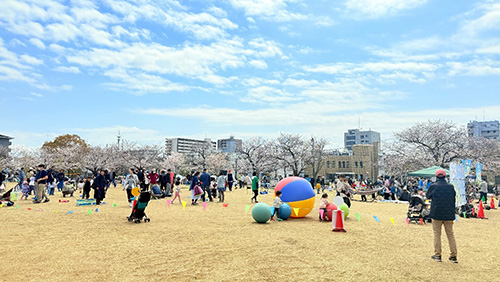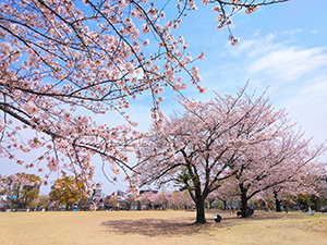 広大な芝生広場で、ぽかぽか陽気の中満開の桜を眺めながら美味しいお酒やグルメを楽しみませんか?