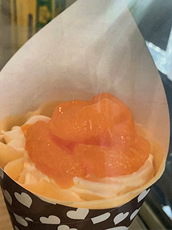 たっぷりのクリームやフルーツを包んだ甘いデザートはお花見を楽しみながら味わう、食後のデザートにもぴったりの一品です。